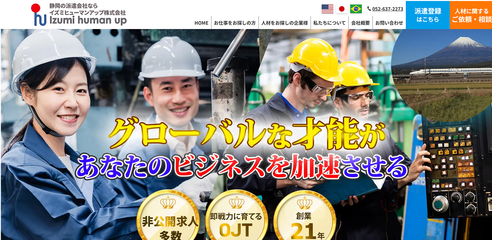 静岡県に拠点を置く「イズミヒューマンアップ株式会社」は、地域密着型の人材派遣・職業紹介サービスを展開しています。